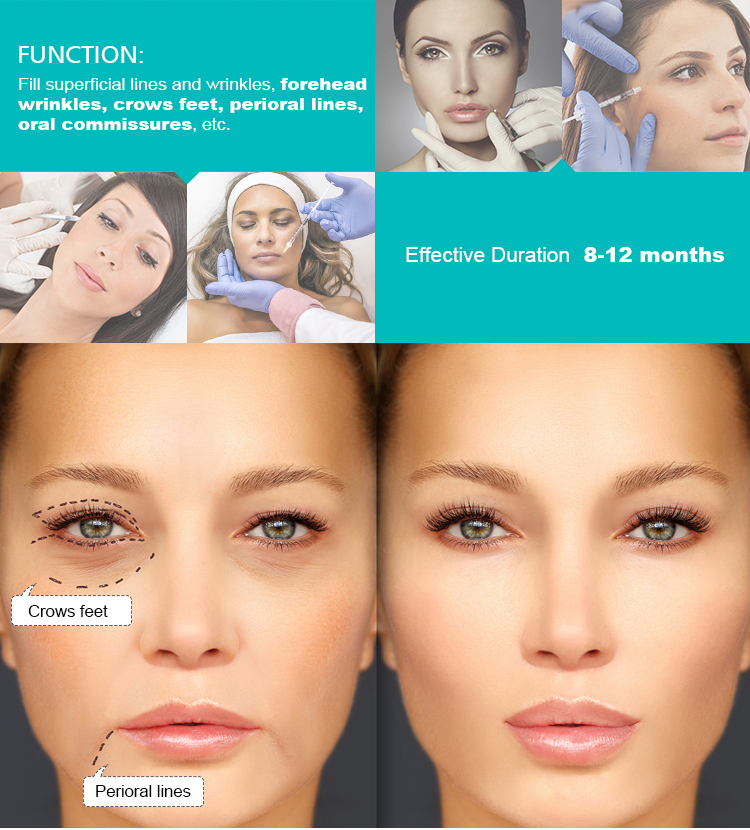 Fine Line 2ml anti aging wrinkles for For shallow wrinkles,such as Crow’s feet,  Lip lines (perioral lines),  Smile lines (surface-level)  Forehead micro-lines